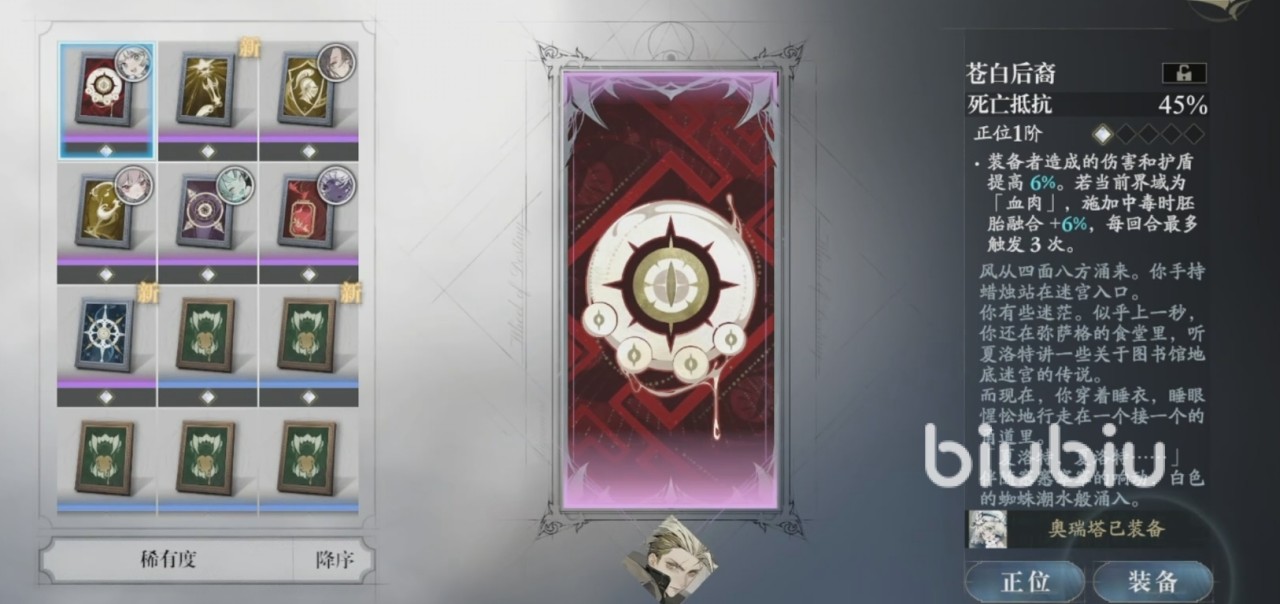 此外,游戏当中还加入了命轮系统,不熟悉的话,可以大致理解为另类的武器系统。是一种将怪谈的刻印和角色所结合的一种另类的属性加成,甚至每一个命轮都还有专属的介绍,做的相当不错。最后就是角色成长的密契系统,总共有六个位置,玩家们可以依靠着获取的密契套装来进行组合,达到额外的属性提升效果。