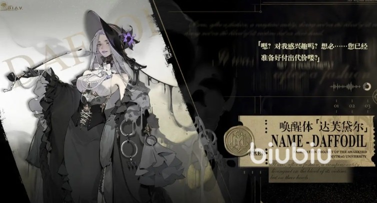 别称水仙夫人,是超维界域当中ssr稀有度角色,只能通过角色活动唤醒。华丽的暗色装饰下,那份从容的外表掩藏着不为人知的秘密。没有人知道她到底想着什么,也没人知道与她交流会付出多高的代价。