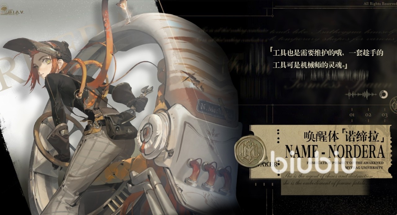 别称鹦鹉螺,是混沌界域当中ssr稀有度的角色,玩家们可以通过唤醒或者角色活动唤醒获得。作为机械师来说,她是合格的,让人最印象深刻的莫过于鹦鹉螺外壳造型的机车,以及其卓越的机械技艺。随身携带着工具,来保证自己可以随时随地进行机械维护。正如她所说,工具也是需要维护的,一套趁手的工具可是机器师的灵魂。