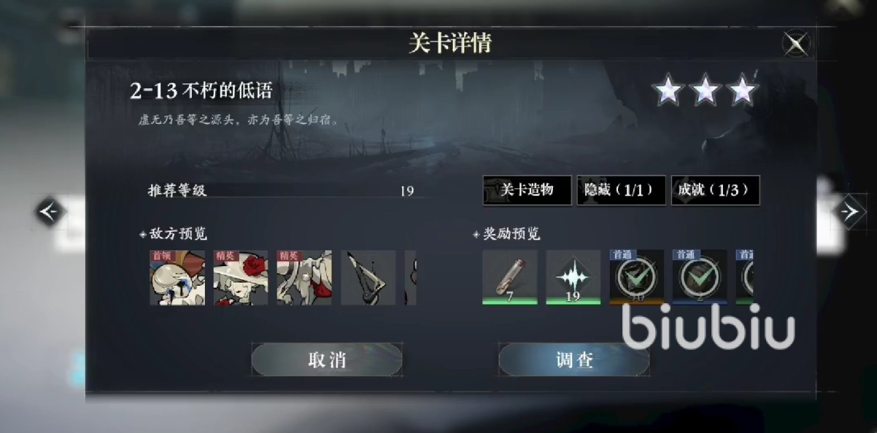 游戏当中,前期的所有关卡完成三星任务挑战,其计算依据的仍是玩家们的任务进度。简单来说,由于每个关卡都是一个小肉鸽模式的游戏体验,因此,对于三星的评判标准则是根据我们最终战的回合数来确定的。