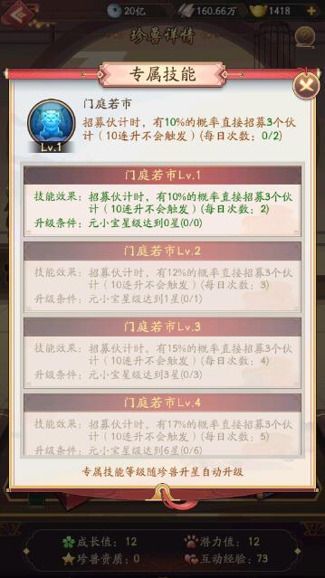 第二个技能主要是门庭若市,该技能在1级的情况下,可以为玩家们提供额外的伙计名额。在进行伙计招募的时候,可以在消耗一个财力的情况下,招募出三名伙计来为店铺进行工作。