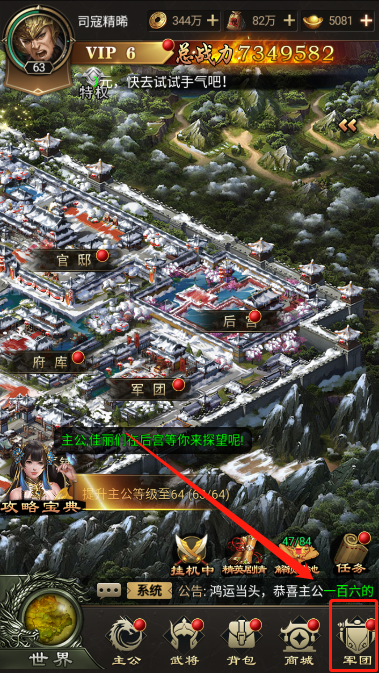 1、首先进入到游戏的这页面位置,点击右下角的“军团”按钮。军团界面的左下角就是“退出军团”的按钮,点击确认即可退出军团。