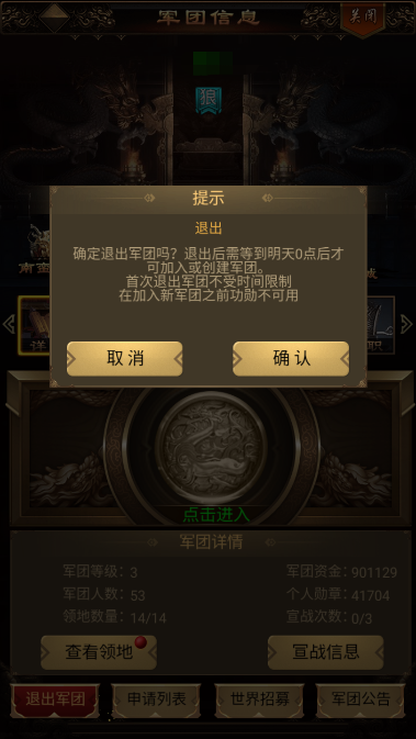 2、玩家需要注意的是如果退出当前军团,那么需要过一段时间才能加入新的军团。