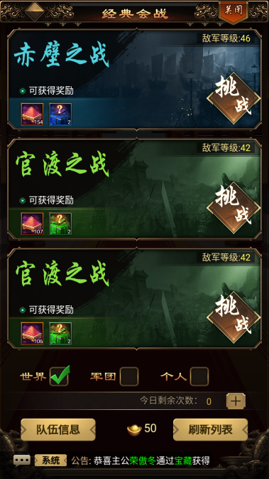 (4)将星之尘:将星之尘是用来购买将星用的,主要通过主城“幻境”中的经典会战获取,关卡难度越高获取的将星之尘就会越多。