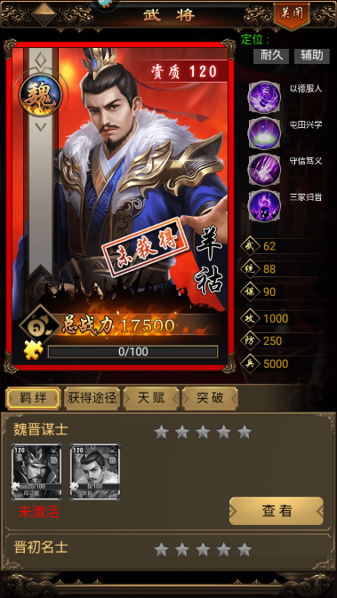 1、羊祜:魏国的辅助系武将数量是最多的,不过魏国的这些辅助都比较偏科。羊祜是个经常被忽视的角色,但是单轮辅助能力,羊祜的强度绝对是魏国阵营中最高的。