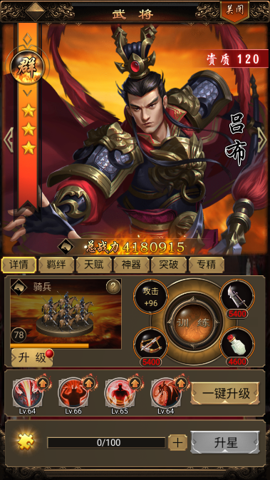 2、武将主要以120资质武将为主,如果是100资质武将,那么此时最好应该是满天赋。