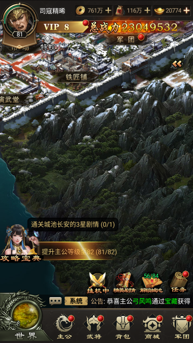 2、想要顺利挑战八十章,除了需要提升战斗力外,等级也是很重要的。一来等级是解锁关卡的必备条件,二来等级是武将进阶的必备条件,进阶后的武将战斗力差距非常的大。