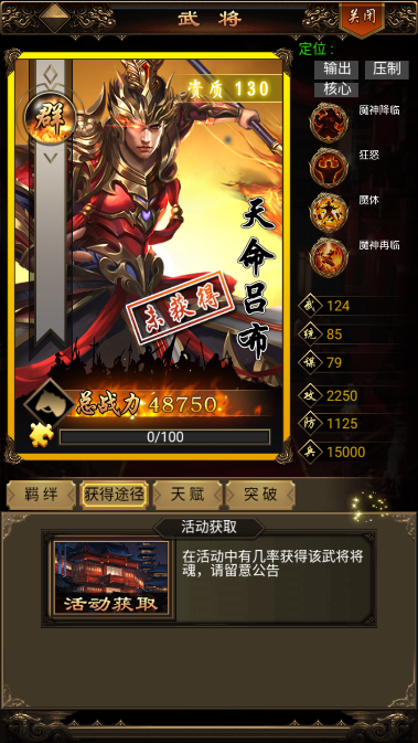 (2)群雄:天命貂蝉武将定位先手、压制;天命吕布武将定位输出、压制、核心;天命毒华佗武将定位治疗、后手。