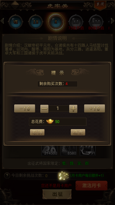 2、这里的副本都是有挑战次数限制的,使用元宝可以购买额外次数,部分价值高的副本可以使用元宝重置一定次数。