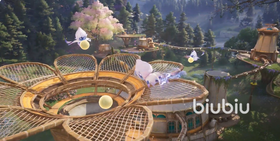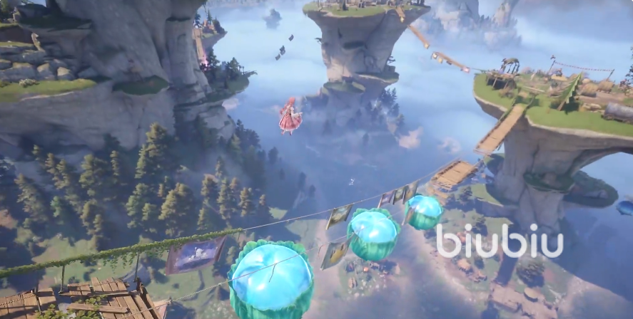 举例来讲,花愿镇是来引导大家收集噗灵,奇想星还有宝箱的,设定了很多的平台,考验跳跃能力的关卡,可能需要踩着伞棚蹦到屋顶上面,跳上气球等等,总之就是在高低错落的房屋之间去收集,操作难度不达,更能感受到跳跃带来的乐趣还有成就感。