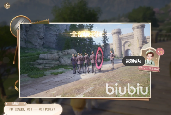 之后大家只要把画面中红色头发的队员圈出来就行,就在最右边,这样整个任务就完成了。其实还是挺简单的,只要找到npc就能轻松的解决,虽说是帮助找儿子,但其实都是找不同,只要跟其他人不一样就行了,很多见闻任务都是这样找,比较突出,特别的存在,后续大家也可以参考这种形式去过关。