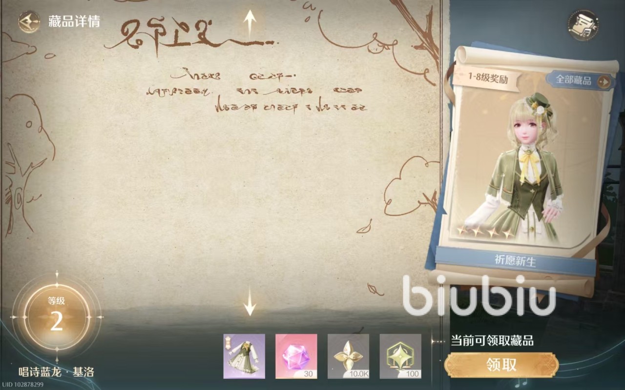 当我们来到纪念山地,找到唱诗蓝龙之后,通过和唱诗蓝龙的对话供奉30枚“灵感露珠”,而唱诗蓝龙作为《无限暖暖》的重要NPC,每接受一次“灵感露珠”的供奉就会赠送我们一次礼物。在第二次送礼时,唱诗蓝龙送给我们的礼物就是“祈愿新生”这条“旧日的她”见闻任务必备的任务道具。