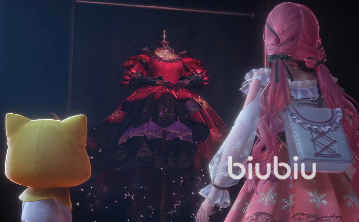 在这里找到了好几件很漂亮的舞裙,正当准备离开的时候,突然一件红色的礼服飞向了暖暖,同时还将空间通道给打开了,之后我们和大喵一起到达了一个异世界,接着会有人让我们前去找她。