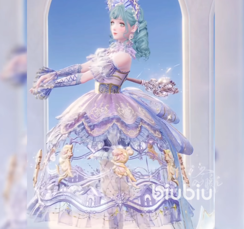八音盒套装,裙摆采用童话和梦幻风相结合的形式。120~180抽可以抽齐5星套装,当然不同玩家有一定的运气差距,一般需要1.5万~2.2万的钻石。4星抽齐则需要50~80抽,大约7k~1钻的样子。