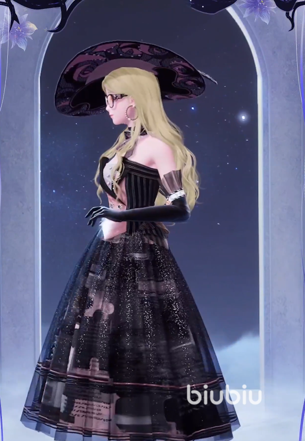 虽然只是三星,但是整体质感还是相当不错的,26号更新后,就可以前往活动,完成对应任务,获得逐梦之轮,就能直接解锁这个套装了。而在“真心予你”商城则继续赠送三套免费套装,第一套免费套装是四星的“织影片梦”,整体效果非常优雅,黑框眼镜搭配帽子和大大的耳环,整体偏向于黑色调。