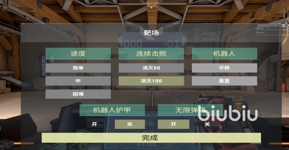 然后就是移动方式和护甲等选项,移动方式可以从四周或者上下方进行移动,而护甲的话主要是为了能让玩家们打得更久一点,最后就是设置距离,在初期很多新手对于远距离的目标打不中,那么就可以将靶场的距离近一些,这时候射击的时候命中率很高。