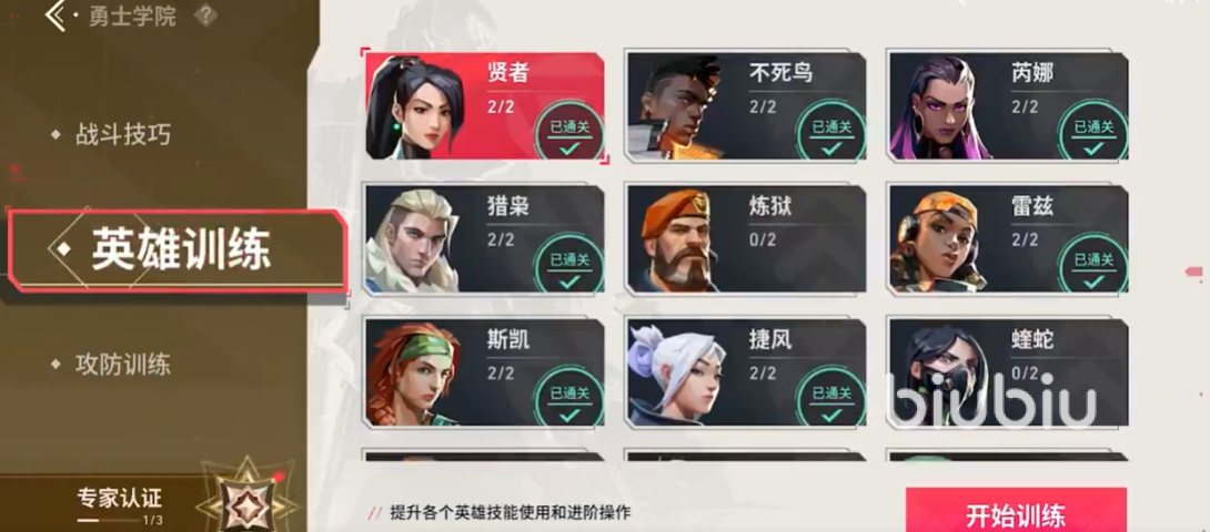 对于所有玩家来说,第一次接触的英雄玩起来肯定不适应,所以要训练一下英雄的技能。游戏内提供全英雄专属训练关卡,每个英雄(如雷兹、捷风、猎枭)都有独立的技能教学。大家要注意好英雄释放技能,如雷兹的“炸弹跳”一键触发。