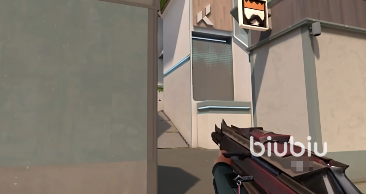 右侧柱子墙角位:封烟后喷射进场,快速扫视左侧埋伏位,利用柱体遮挡进行短暂调整,再清右侧阳台与二楼下方,进而推进包点。
