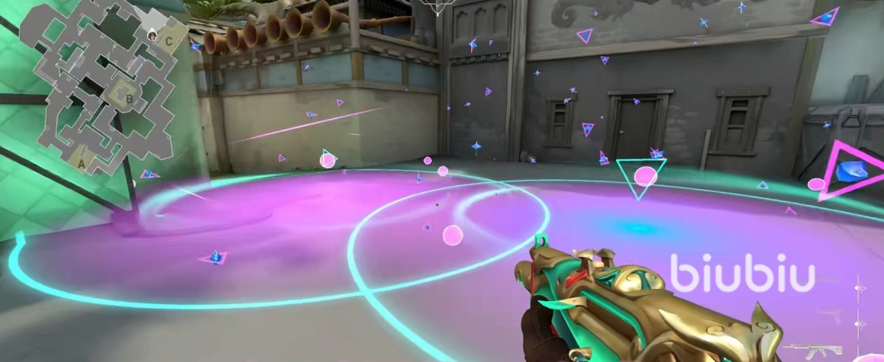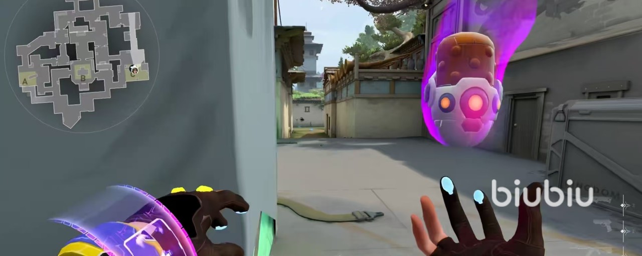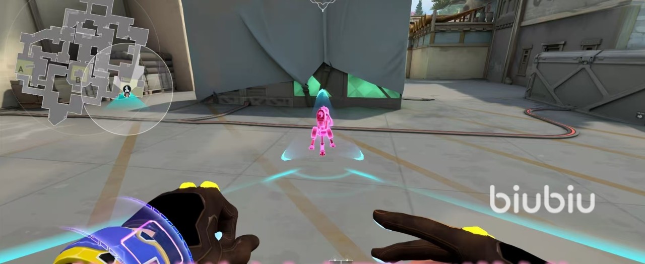 第2个技能是装备隐形的自动哨兵机器人,在部署之后可以自动追踪进入到范围的敌人,只要接触目标就会发生爆炸,造成伤害后还会附带易伤效果。这样既可以为己方提供敌人的位置信息,也可以和其他队友的技能配合起来使用击杀目标。第3个技能纳米蜂群,扔出纳米蜂群手雷后,落地会隐形,激活后释放出一群纳米机器人,对敌人进行攻击。这个技能一般放置在不易被发现的位置,和自动哨兵一起配合起来,在敌人触发哨兵之后激活手雷,这样就可以配合着打出大量伤害。