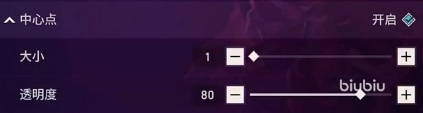 然后切换到“不开镜准星”这一栏,这里建议把“准星描边”和“中心点”开启,在中心点的下拉菜单中可以选择调整准星的大小和透明度,大小可以设置成1或者2,透明度80,颜色随自己的喜好,尽量选择一些深色的。
