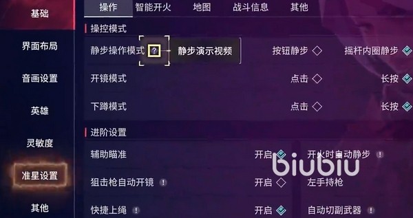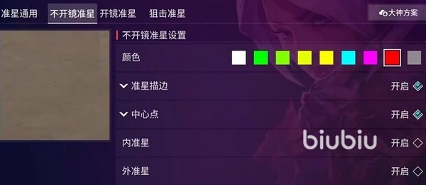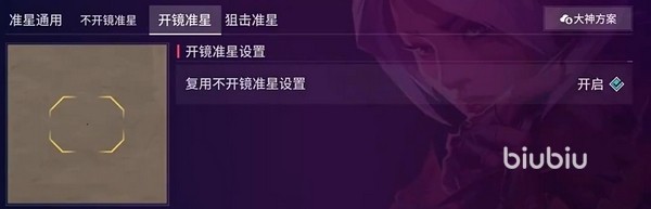 然后是“开镜准星”,在这里把“复用不开镜准星设置”给开启,这样主武器开镜的时候,准星依旧不会发生变化,镜头视野依旧清晰,不至于突然的变化让玩家不容易聚焦。
