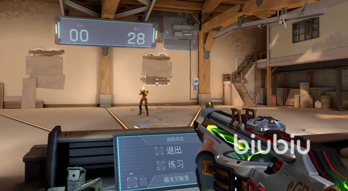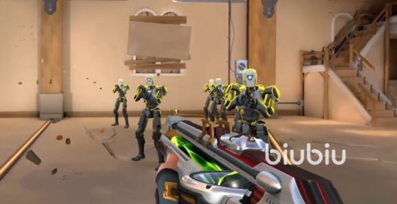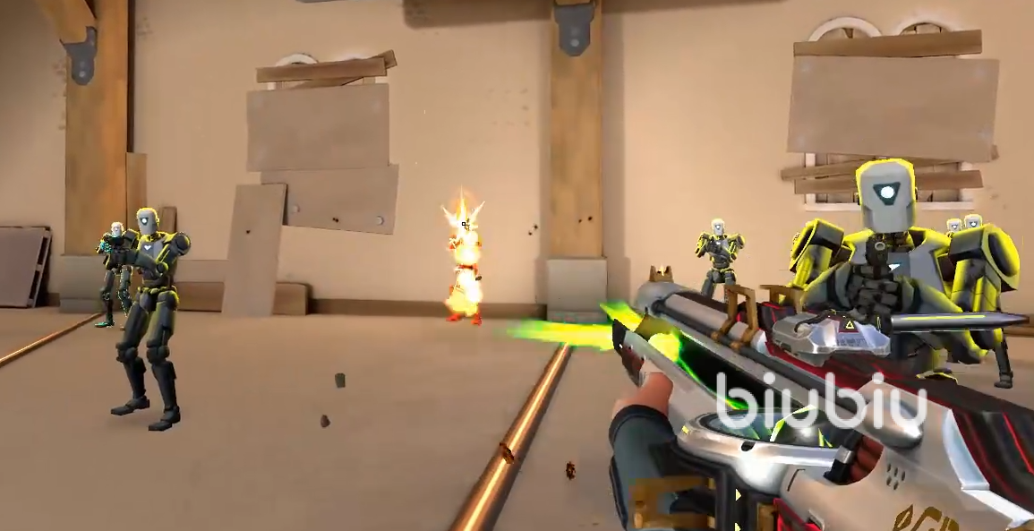 最后是控枪练习,我们可以先把前面几发子弹打向墙壁,然后迅速进行拉枪,把准星控制在机器人的头上,就打前面几发,然后迅速拉枪,这样练习能帮助我们一次性面对多位敌人,需要注意由于枪械后坐力的存在,一般情况下子弹都是前面3发是最准的,所以攻击其他目标时记得微调一下。