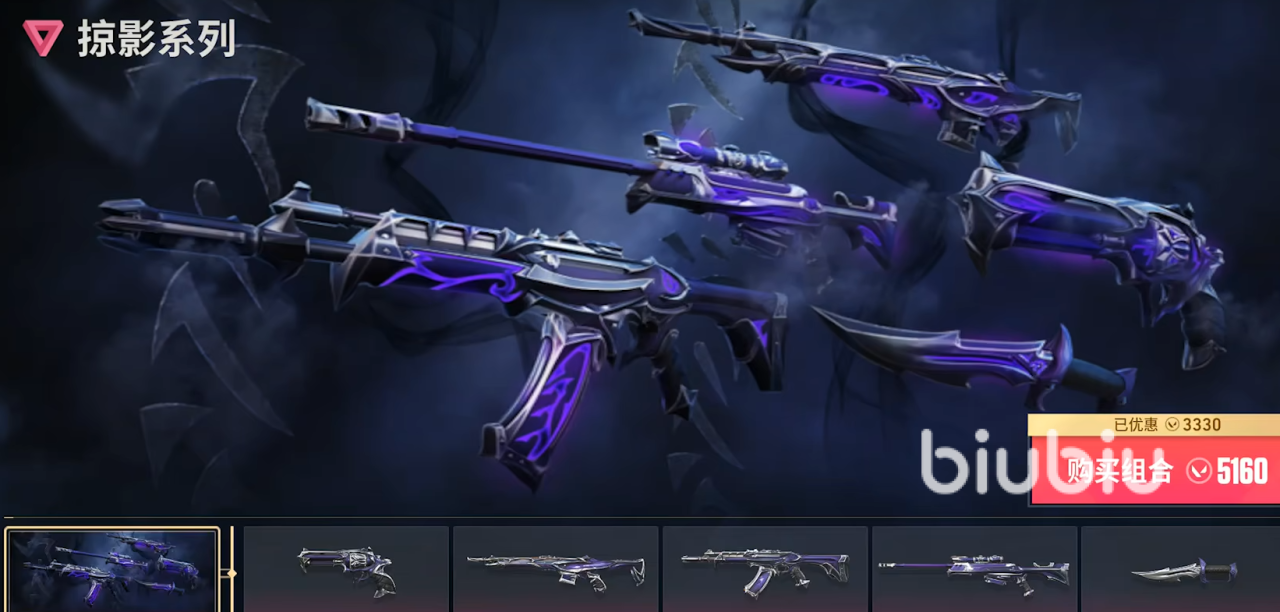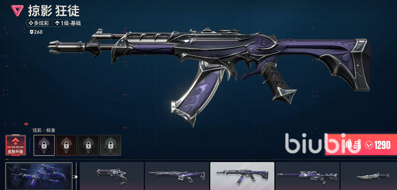 皮肤主要就是武器皮肤,这个是玩家最为关注,体验也是最明显的氪金项目,目前所有当季皮肤特效,玩家均可以通过主打商店,直接选择成套折扣购买,或者也可以单个武器皮肤原价购买。