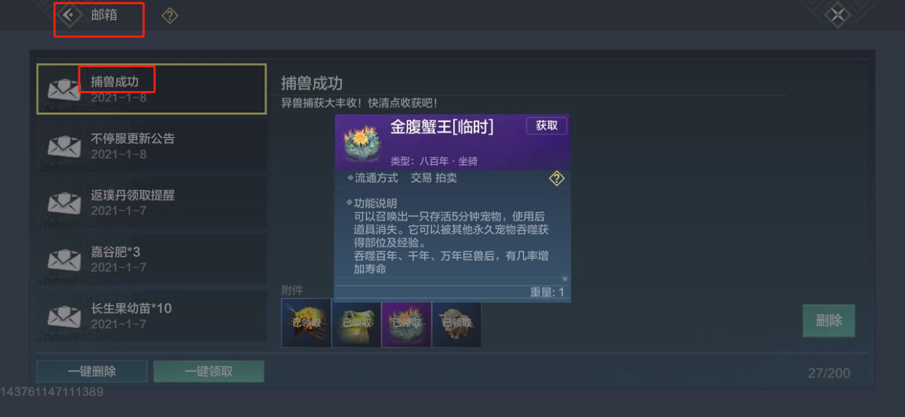 经过很多玩家的测试,目前虎齿夹只能用来捕捉临时的宠物(主要用来宠物吞噬进化用的),暂时还没有看到有玩家捕捉到元胎。