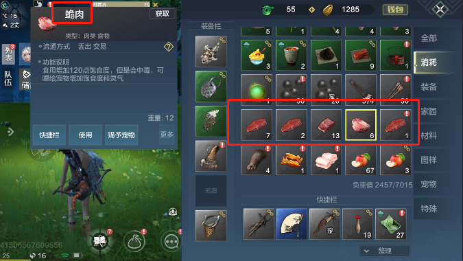虎齿夹安装好了之后就能抓宠物了。虎齿夹的使用也是非常的简单,大家在安装好陷阱之后,在陷阱的周围放置一些肉,这样就可以轻松吸引怪物们前来了。