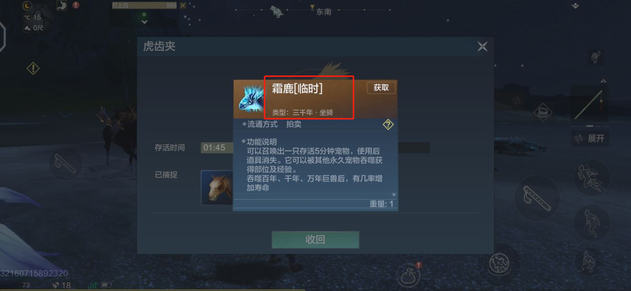 经过测试在游戏不同的区域,虎齿夹可以抓住该区域不同类型的宠物。小编的建议是大家最好在高级千年怪物多的地方放置虎齿夹,这样抓到高级宠物的几率会更加高。
