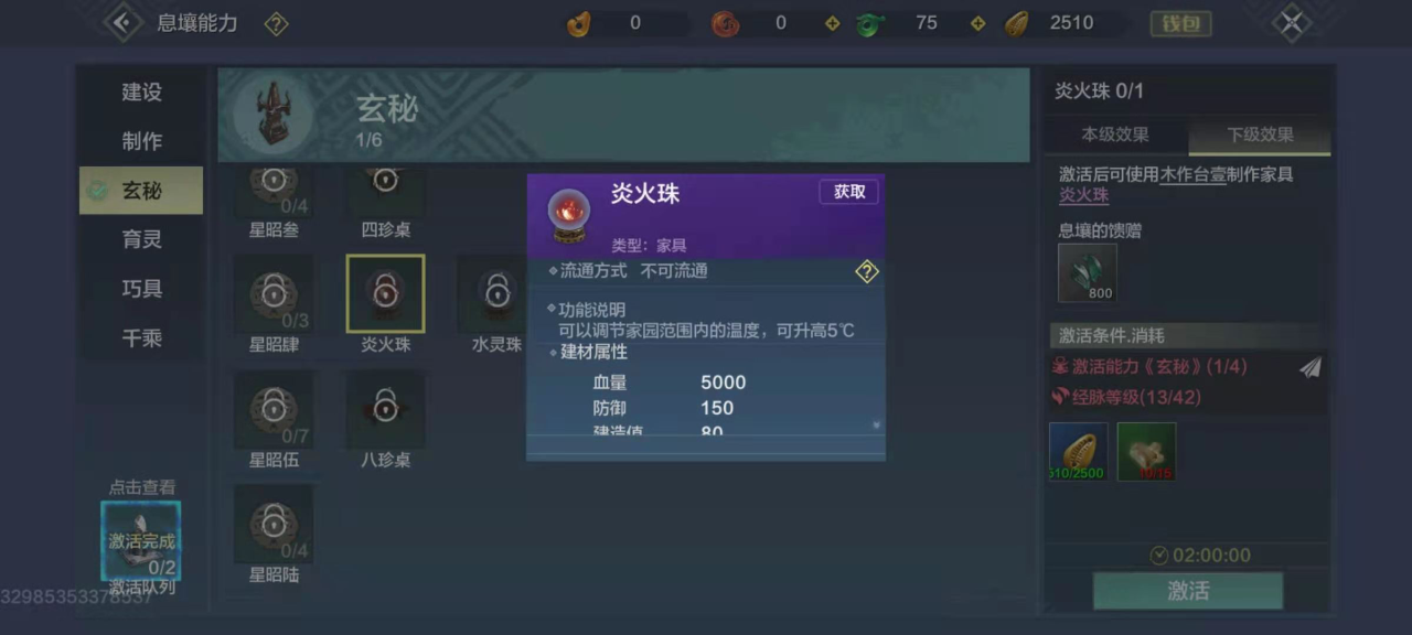 炎火珠和雪沁珠都属于家具类,想要建设这两个家具需要家庭玄秘等级达到4级,以及经脉达到42级,不过这对于可以打万年异兽的玩家来说很简单就可以达到。不过原料确实比较难搞。