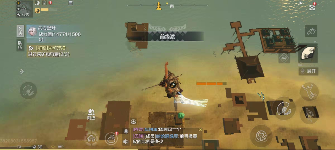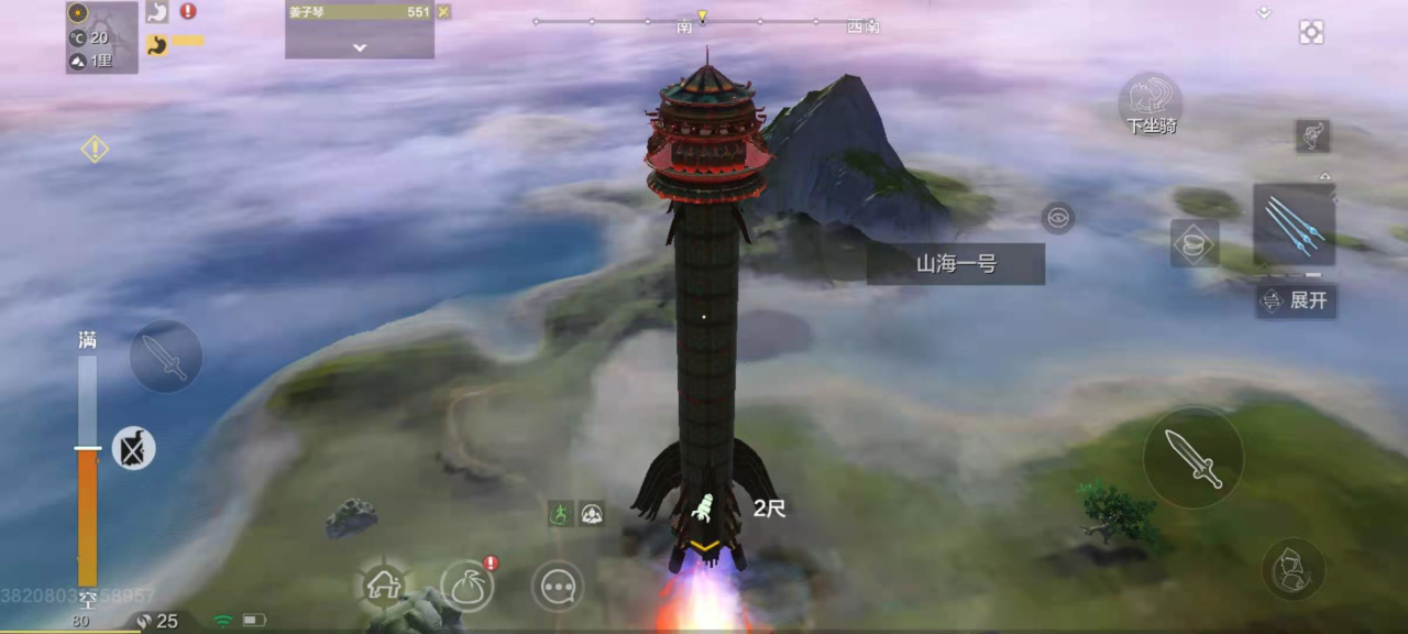 第一个是利用火箭飞天,在地图上找到山海一号的图标之后,定位直接过去就可以了,需要准备好木材和焰磷这两种燃料,加注燃料之后就可以升空了,升空之后选择脱离火箭,就可以从半空中落下来,这时就能使用空中技了。