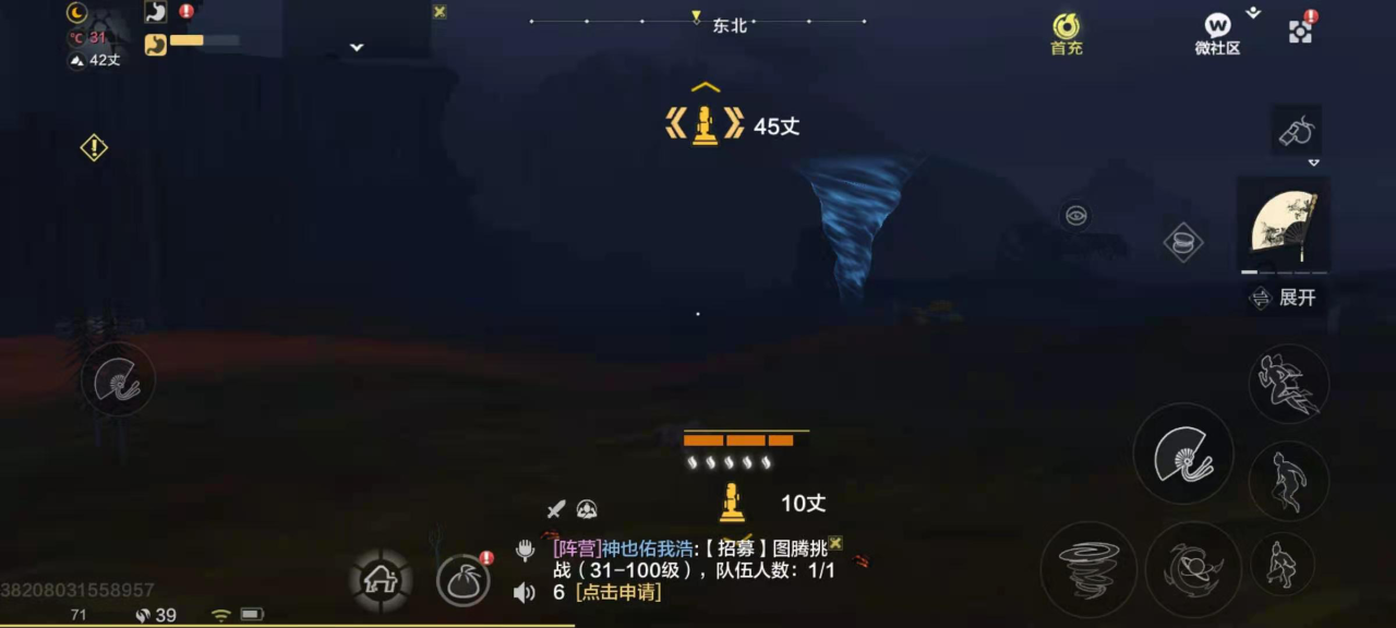第三个是利用沙漠里的旋风,在沙漠地形中,经常会出现一些强力的龙卷风,当玩家接近这些龙卷风的时候就可以被风吹起来,有的龙卷风可以把玩家吹的非常高,直接就能到达半空中。