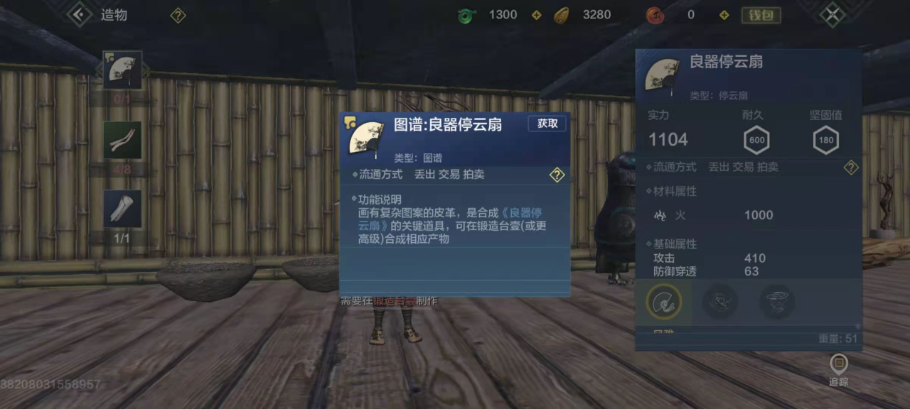 而且炼器生成的装备都是随机的,所以这一条路是最不推荐大家去走的,相反锻造这里是非常精准的制造,我们只需要找到对应的停云扇图谱就可以直接打造出停云扇来,除了图谱之外,还需要异兽骨头、稀有布料等。