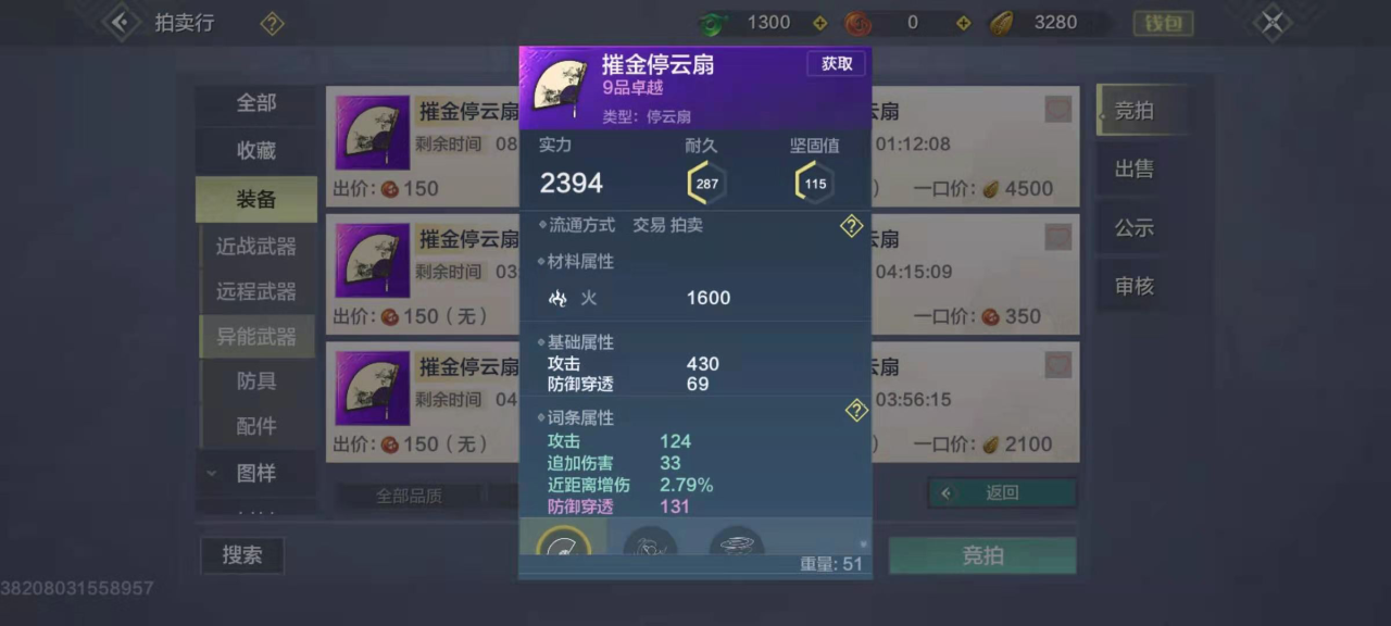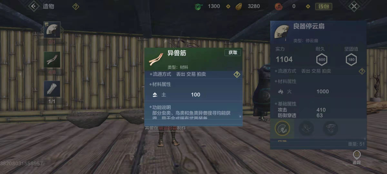 想要快速刷出停云扇,这些途径就要多管齐下,因为我们并不是只制造一把停云扇就完了,武器都是有耐久度的,一旦损坏到不能修的地步就要换新的,所以要多准备几把才可以。