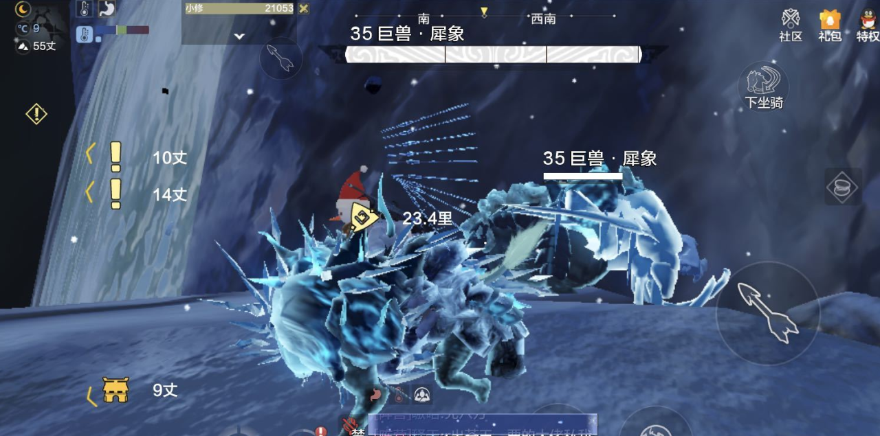 2、犀象全身被冰块包裹着非常的漂亮,本身犀象就属于比较稀有的一种,另外还有一种千年巨兽犀象,千年犀象属于60级怪物强度还是非常高的。