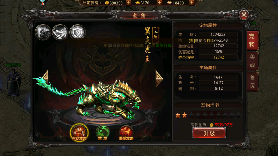 游戏里给宠物进阶需要用到海量的金币,进阶的流程是使用金币给宠物升星,升到一阶满星以后就可以进阶然后继续升星,而越往后面升星需要用到的金币数量就越多,到达第九阶的时候升一颗星都要用到上千万的金币了,所以建议大家先把金币准备好,多去获取一些金砖,然后在副本里多打一些怪物就能获取足够的金币了。