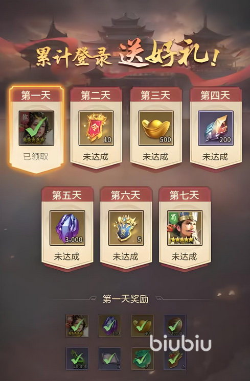 这款游戏中获得武将最基本的方式当然是招募,招募武将需要消耗抽卡道具,这也是这一类游戏的共同特点,除此之外,在开服之后还会有一系列的活动,这些活动会赠送给大家大量的顶级武将。首先是第1个活动累计登录赠送豪礼,玩家每天在主城页面中进行累计登录签到,首日就可以获得一个S+的神将甄姬。累计登陆第2天可以获得一次十连抽的机会,累计登陆第7天,就可以获得S+的神将麒麟诸葛。