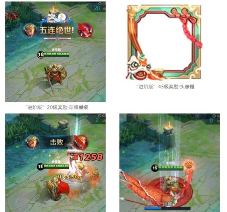知道完不收费褔利,咱们再讨论一下S16升阶版荣耀战令的局内展现都有什么?经过图为能够看见最新赛季将发布一样画风核心的四件套奖品,即增添了“醒狮”中国风元素的光荣广播、头像框、击退和回城特殊效果,打算获取这四件套的游戏玩家,要将升阶版战令顺次提高至20/45/55/70级!
