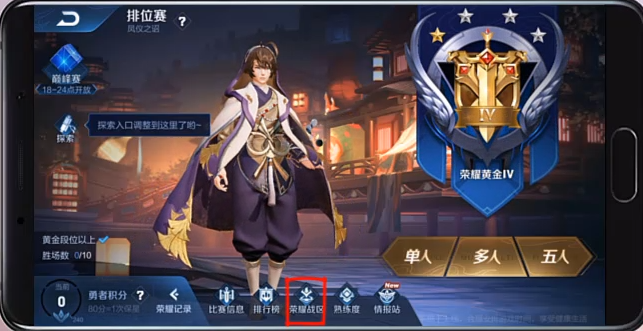 4、选择“荣耀战区”。