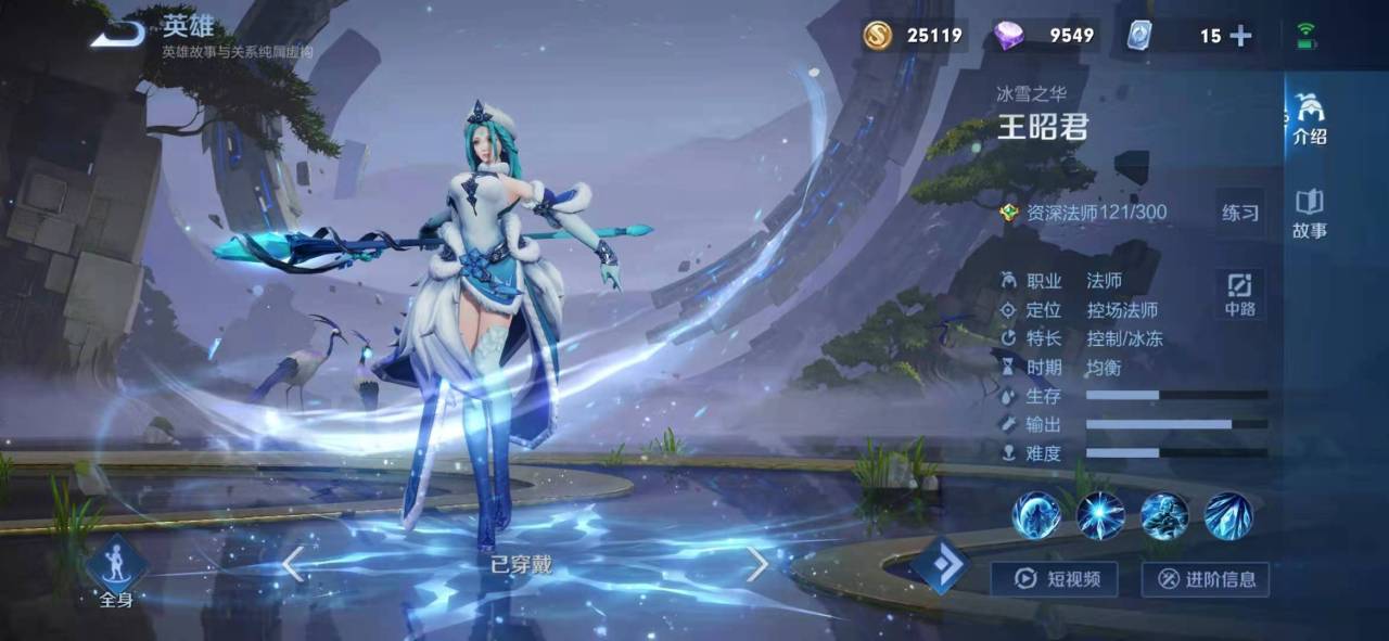 王昭君作为法师中单中的一姐,拥有很强悍的清线能力,平时直接一个二技能+一技能就可以轻松清线,然后支援队友。特别是她的大招,可以直接在大范围内形成一道冰阵,在里面的敌人会被冻得动弹不得,非常给力,接着继续一个一技能砸冰就能造成巨额输出。