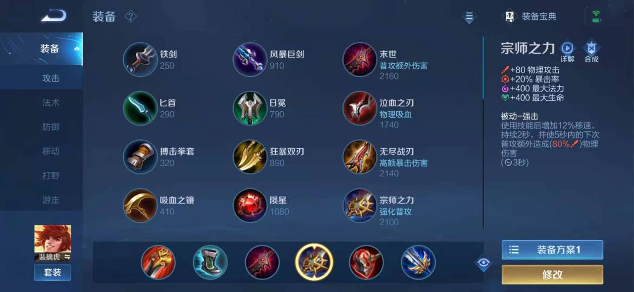 老虎的鞋子需要出韧性鞋,避免被长时间控制,打野刀出攻速刀,快速打出平A。第三件出末世,续航能力提升,补足攻速。第四件出一把宗师之力,加强平A伤害,还可提升移速以及血量。第五件出碎星锤,提升破甲伤害,最后一件破军即可。
