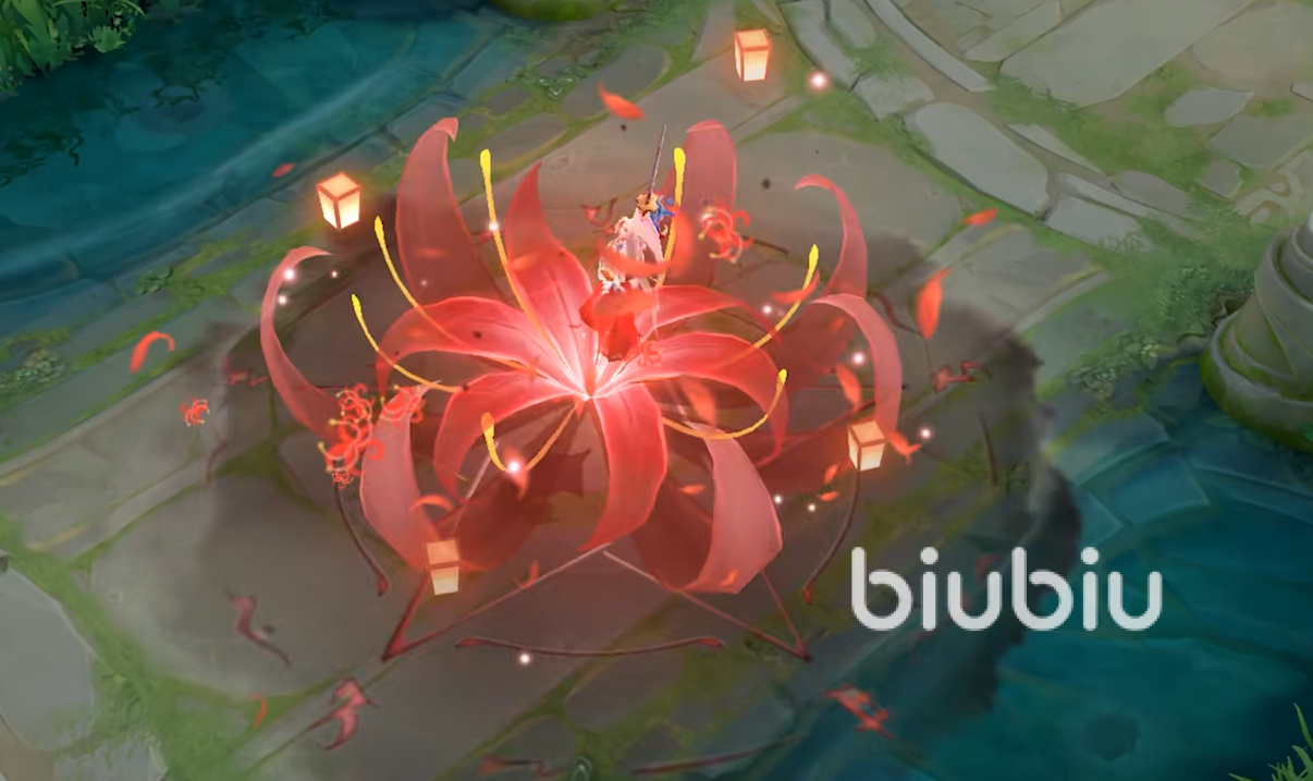 其大招效果也会有两种样式,其中一个是会在脚下划出深蓝色的星光剑阵,旁边还会有一圈符文。另一个的效果是角色画完法阵之后会有一朵巨大的红色彼岸花呈现出来,期间还会有灯笼和小的花朵飘出。