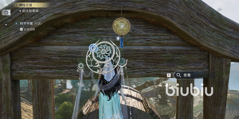 这个任务需要玩家手环等级达到32级才能开启,打开地图来到百草园这个传送点,然后朝正西方向前进,直到看到大风车,接下来需要利用勾锁跳到大风车上面,这个任务地点比较复杂,是大风车上的一个石碑,找发蓝光的点位。