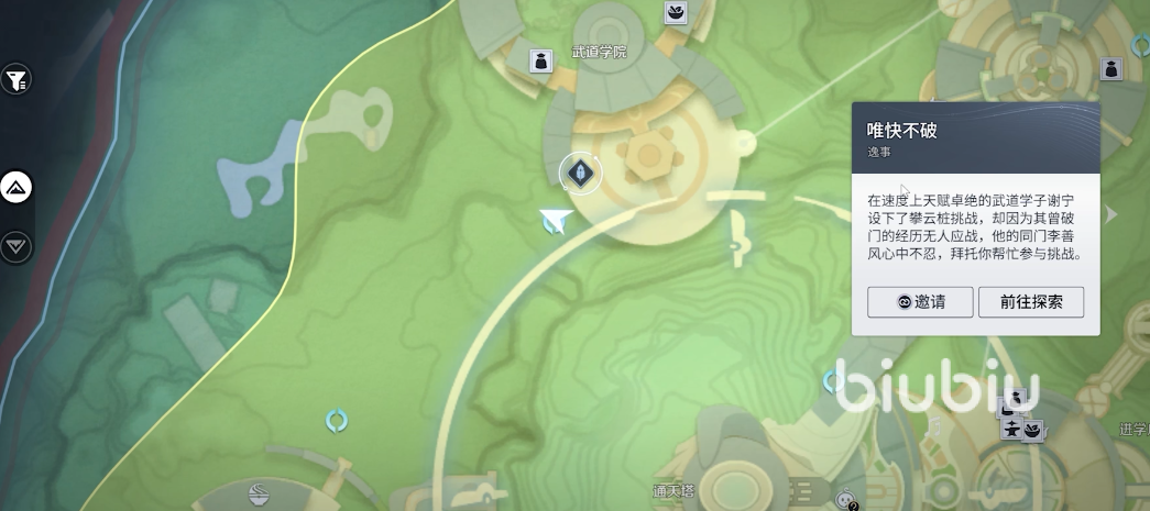 游戏中支线任务的解锁除了要找到领取任务的NPC之外,也要达到触发条,这个任务需要玩家的手环等级达到32级。这样玩家到了武道学院找到李善风才能触发任务。