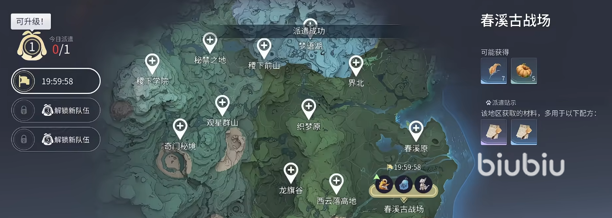 之后就是派遣角色去收集材料了,游戏中建造家园的材料还是比较多的,如果玩家们依靠个人去收集实在是太浪费时间了,所以就有了派遣系统,玩家们可以定期将角色派遣出去,派遣以后就能收集不同类型的材料,后续打造家园也会更加地轻松哦。