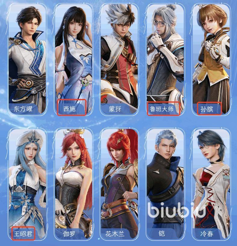 含主角元流之子在内的首发角色有11个,其中辅助定位的有西施、王昭君、孙膑、鲁班大师。