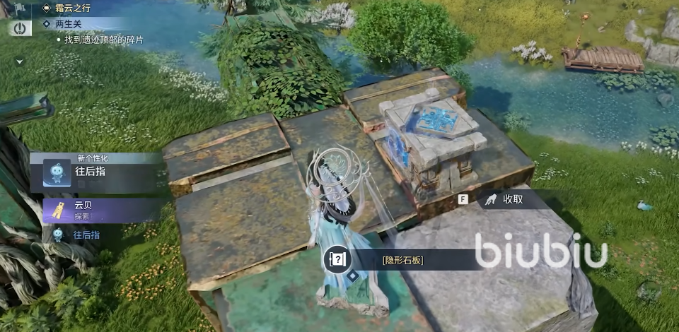 到达后打开石板拿到关键道具就可以回去了。在这里注意,当玩家拿到石块后会有一个【隐形石板试炼官】,玩家可以选择要不要领取任务,这个任务会解锁一个神秘宝藏点。