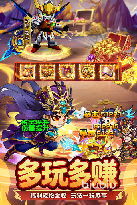 相较于其他放置卡牌,它独创了一种“智谋转盘”玩法,把策略、随机事件、福利成长这些都融合在一起,转动就有机会获取稀有的武将,更有机会获得高阶的军备,海量的养成资源,多重随机奖励可以接连触发。