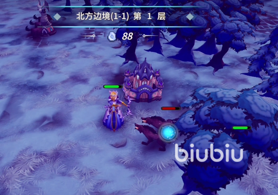 游戏采取的是肉鸽和动作结合在一起的一个模式。一进入副本,一开始游戏里面只有两个单位可供我们操控,我们首先先往下面走,在走了没多久便会遇到第一波敌人,玩家们远程输出的角色血量比较低,我们所需要做的是让卫士先去攻击敌人,让其的仇恨拉到最大。这样我们的远程输出单位就可以获得比较安全的输出环境,之后将其消灭即可。